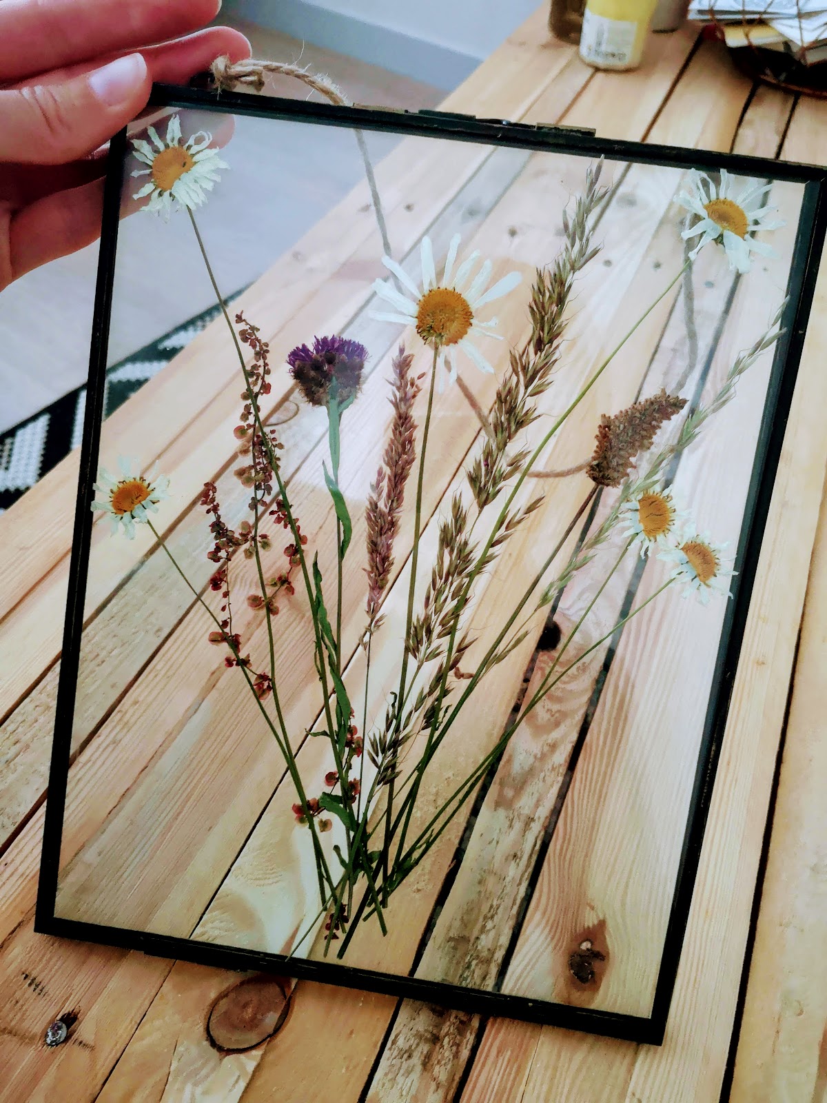 Il suffit ensuite de les laisser sécher 2, 3 jours dans un gros bouquin, puis de les placer délicatement et harmonieusement dans ton cadre.